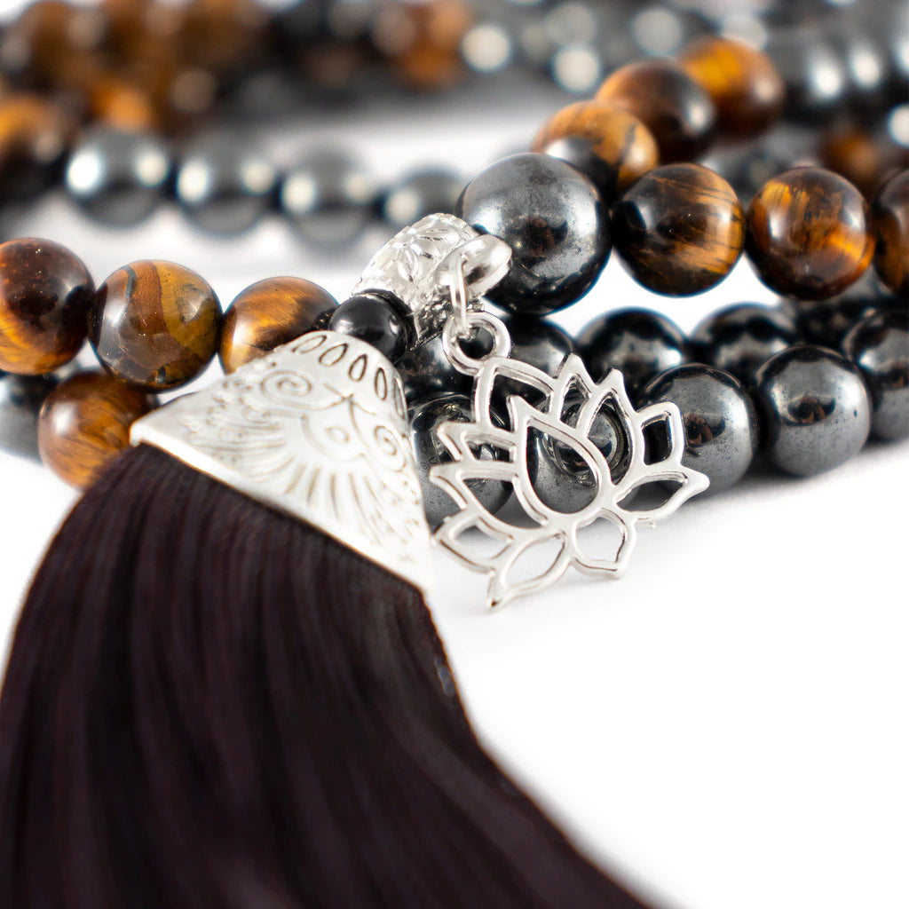 Com 108 contas — número tradicionalmente considerado sagrado em diversas linhagens — o japamala auxilia na contagem de mantras, ciclos respiratórios e práticas contemplativas. Use no pescoço, no pulso (em voltas) ou no altar pessoal como instrumento de foco.